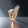 Base Metal: 925 Sterling Silver Finish: High Polish Rose Gold Design: Sculptural Leaf Statement Ring Stone Type: High-Grade Cubic Zirconia Stone Color: Deep Blue Setting: Pavé Set Marquise Accent Detailing: Linear Textured Surface & Openwork Shank Profile: Bold · Organic · Sculptural Style: Contemporary Couture · Statement · Artistic Luxe Jewellery: Ladies Ring